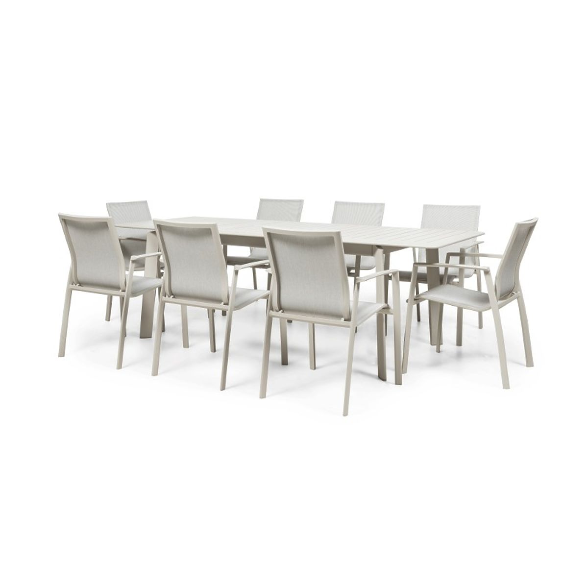 Záhradný set Canelli, rozkladací stôl 175-234 cm + 8 stoličiek, hliníkový, svetlo béžový
