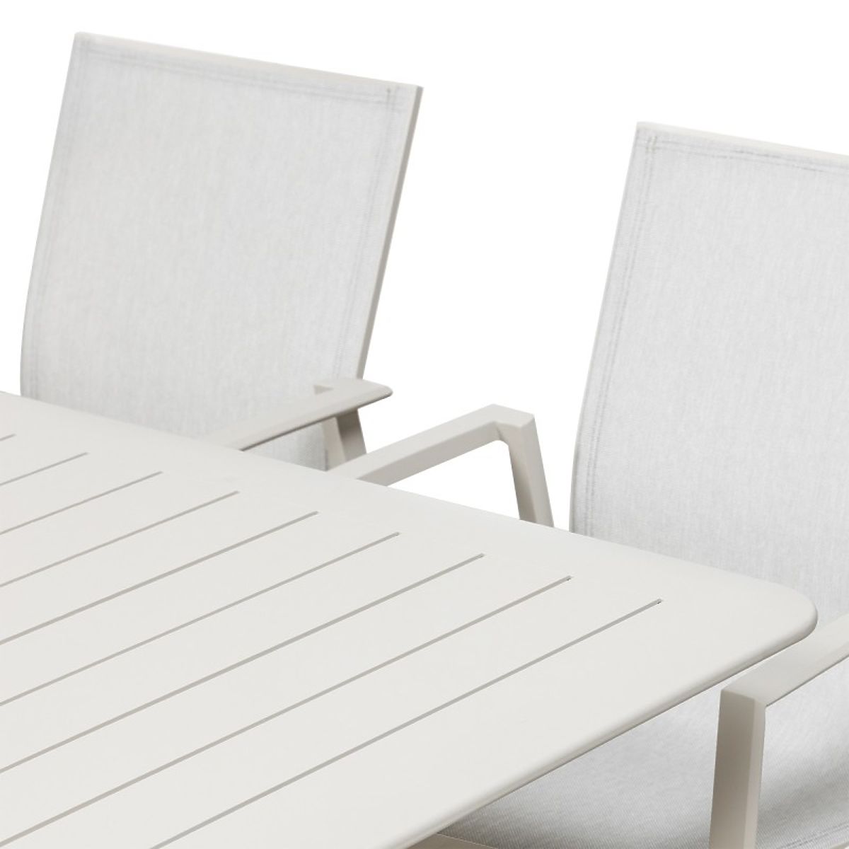 Canelli je záhradný set vytvorený s ohľadom na moderné priestory a pohodlný odpočinok. Hliníková konštrukcia v jemnom odtieni béžovej spája eleganciu s odolnosťou a skvele si poradí s premenlivými poveternostnými podmienkami. Vďaka funkcii rozkladania stola ľahko pripravíte miesto pre väčšie stretnutia a spoločné chvíle na čerstvom vzduchu.