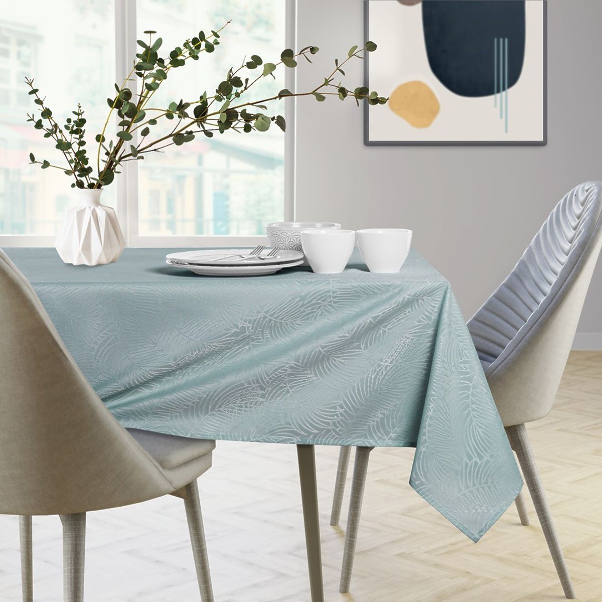 Lukahome.sk » Kuchynský textil / Obrusy / Obrus GAIA mätová farba s vytlačeným rastlinným motívom 140x180 ameliahome