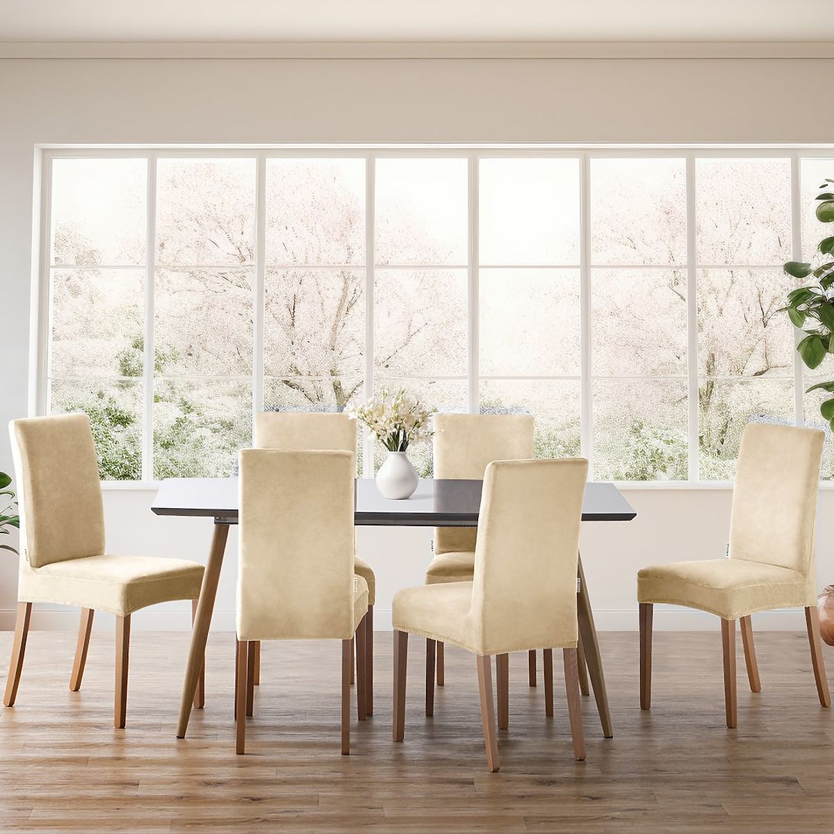 Lukahome.sk » Textil / Poťahy na stoličky / RESTILO poťah na stoličky SENTO farba svetlo béžová hladký klasický štýl