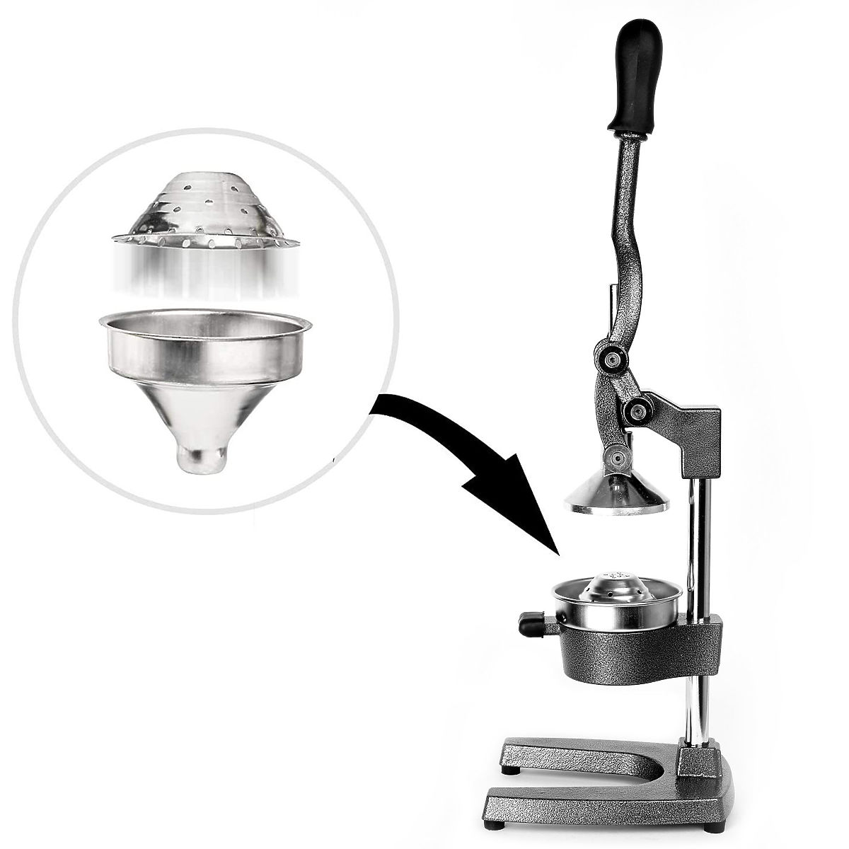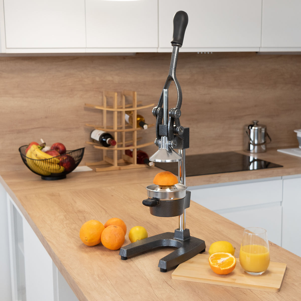 Odšťavovač na citrusy a granátové jablká Verna Určenie: pre citrusové plody, granátové jablká | Farby: čierna Odporúčame solídny, liatinový odšťavovač Verna. Je vyrobený z materiálov najvyššej kvality, čo zaručuje dlhú životnosť. Esteticky prevedený, veľmi dobre sa hodí do kuchýň s otvoreným priestorom. Je bezpečný pri použití - má protišmykové nožičky a jednoduchý pákový systém bez pružín. Sito a lievik je možné umývať v umývačke, čo šetrí čas. Odporúčame pre domáce použitie aj pre profesionálne gastronomické prevádzky. Vlastnosti produktu - solídna liatinová konštrukcia - z materiálov najvyššej kvality - estetické prevedenie - protišmykové nožičky - pákový systém bez pružín - pohodlná komfortná páka - ručný odšťavovač: bez hluku a použitia elektriny - nevyžaduje veľkú silu - jednoduchá obsluha - jednoduchá údržba - sito a lievik je možné umývať v umývačke - ideálny pre citrusy a granátové jablká - veľké množstvo šťavy bez strát na produkte Rozmery produktu výška: 71 cm šírka: 18 cm hĺbka: 29 cm priemer sita: 11 cm Ďalšie informácie Uvedené farby sú orientačné - môžu sa líšiť od skutočných kvôli rôznym nastaveniam monitorov a procesu úpravy fotografií. Skutočné rozmery sa môžu líšiť od uvedených. Tolerancia chýb môže byť +/- 5%. Značka: Gockowiak Kód produktu: 325230MG Farba: čierna Výška: 71 cm Šírka: 18 cm Hĺbka: 29 cm Priemer sita: 11 cm